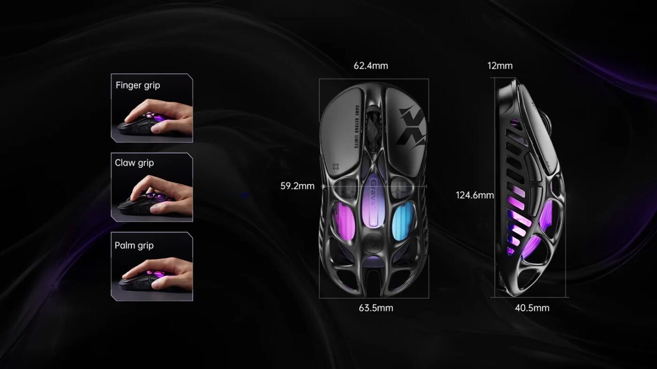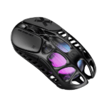 موس GravaStar Mercury X از همان نگاه اول با طراحی خاص خود گیمرها را شگفتزده میکند. بدنه از آلیاژ منیزیم ساخته شده که هم مقاومت فوقالعادهای دارد و هم بهطرز چشمگیری سبک است. وزن تنها ۴۹ گرم باعث میشود این موس در دستهی سبکترین موسهای گیمینگ دنیا قرار گیرد. طراحی اسکلت باز و مشبک (Hollow Shell) علاوه بر ظاهر آیندهنگرانه، تهویهی هوا را بهتر کرده و از تعریق دست در جلسات طولانی جلوگیری میکند. این موس با خطوط زاویهدار و جلوهای فضایی، برای گیمرهایی که به دنبال تفاوت هستند، انتخابی بینظیر است.